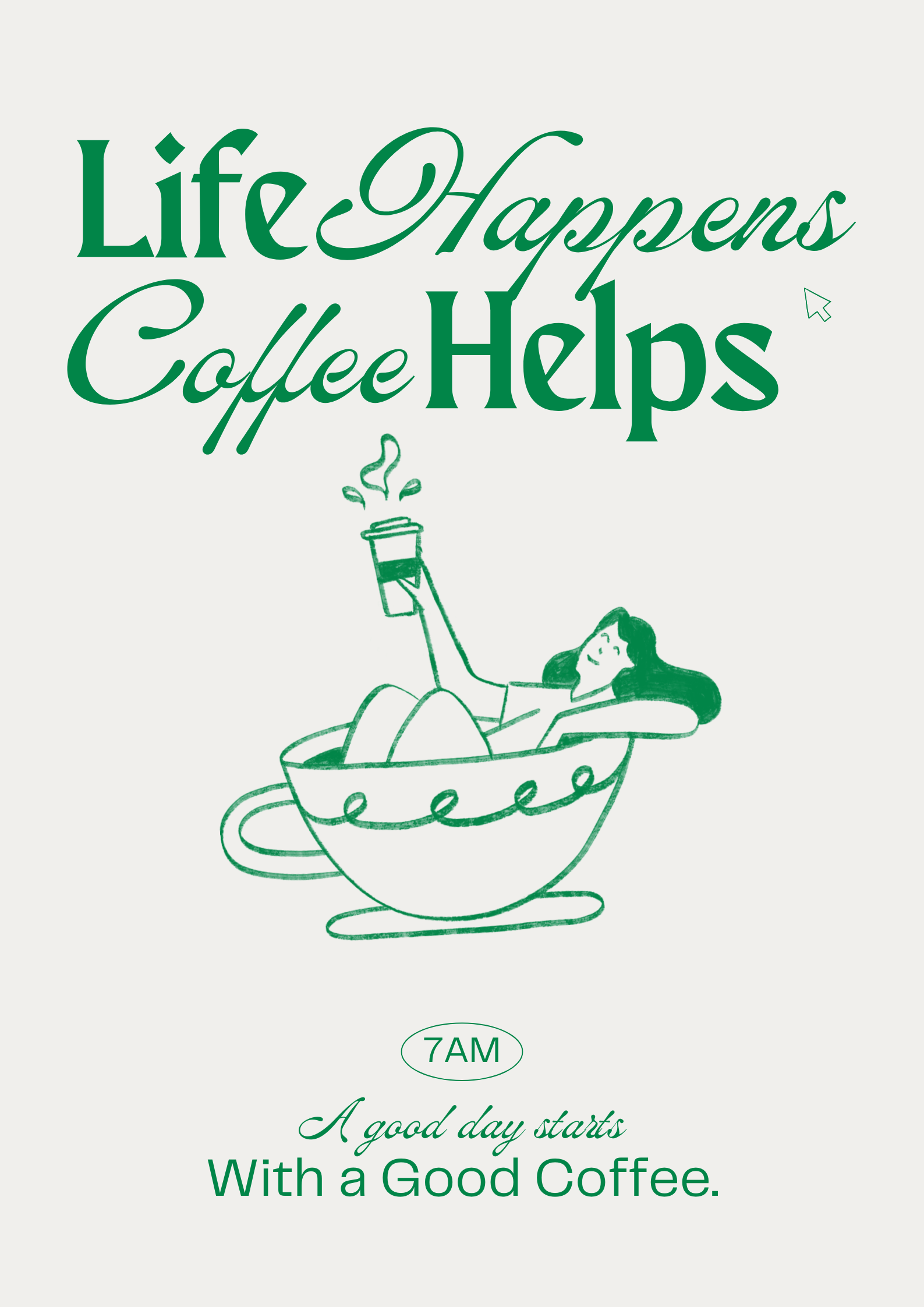 For the coffee lovers who know that caffeine fuels creativity and calm – "Life Happens, Coffee Helps" is a bold and relatable A3 poster from our Modern Art collection. With retro-inspired design and warm, earthy tones, it’s the perfect piece to add personality to your kitchen, home office, or coffee corner.
