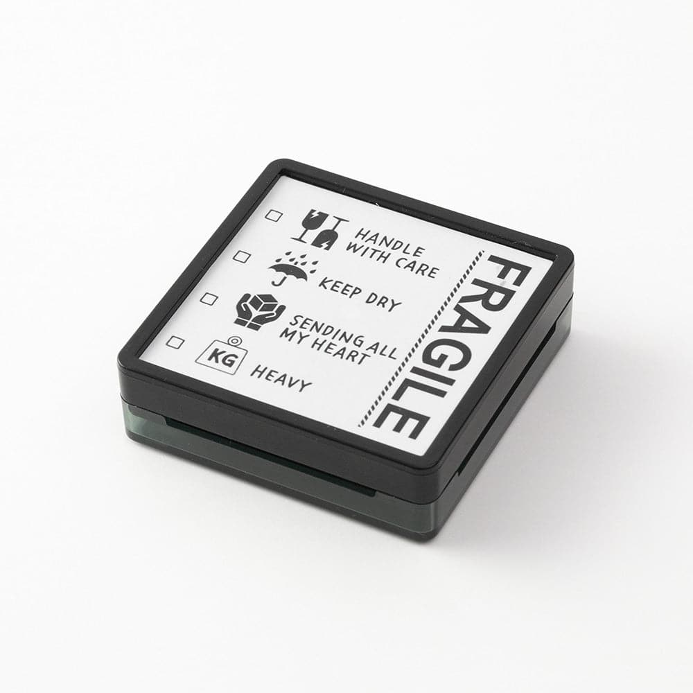Midori pre-inked paintable stamp. Pre inked Fragile stamp. Measurements H61_W61_D19mm. Oil based ink. Paintable stamp for notebooks, diaries, sticky notes and presents. The stamp is pre-inked so that you don't need to prepare an ink pad. The ink of the stamp is waterproof so that you can paint over the stamp with non-permanent markers.