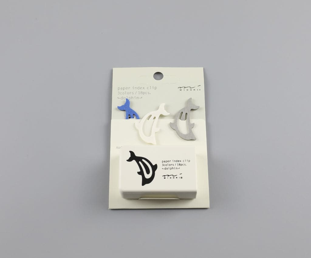 Sturdy ecological index clips Fade entirely from paper fibres Includes a neat little case Fabulous little index clips made entirely from paper fibres, which is amazing considering how stiff and sturdy they feel. Midori wanted to create an ecological clip that could be completely recycled. In typical Midori fashion, they have not only hit the mark with the index clips but also with the neat little case that they come in, which is 51% paper fibre (amazing again because it feels completely different from paper). Perfect for organising papers in the cutest way possible. They also make great bookmarks. Each case contains 18 pieces (six of each of the three colours: blue, white and grey). Available in other designs.