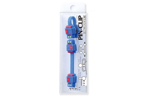 Clips up to 40 sheets of paperGreat for tying cables, bags, etc Fade with soft elastic silicone Midori's original Pin Clips have been redesigned with elastic silicone, making them softer to the touch and easier to use as the hook/loop is now a bit more stretchy. They clip up to 40 sheets of paper and are equally useful as bag ties, cable tidies or for similar purposes. Available in other designs.