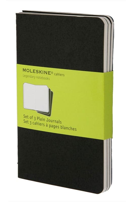 Pack of three pocket 9x14cm plain black Cahiers with card covers and visible stitching on spine. Each Cahier is a slimline report-style notebook.The last 16 sheets are perforated for easy detachment, making it easy to share notes.